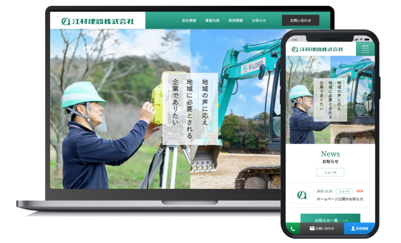 ビジネスアシストで戦略に基づいたコンセプト立て、ディレクション、撮影、デザイン、サイト構築、SEO対策までトータルでWEBサイト制作を行った、江村建設様サイトを2025年12月25日に公開しました。