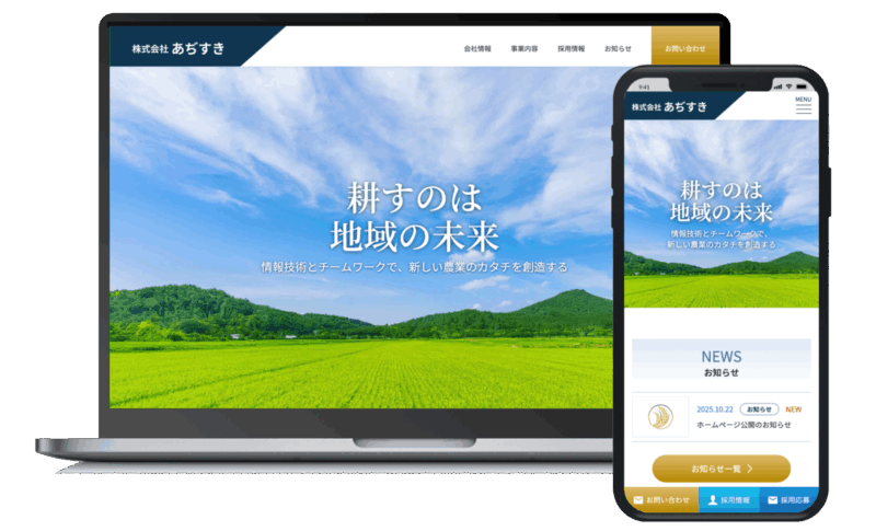 本サイトは、「採用成功」 と 「会社紹介・情報発信」 を目的とし、求職者や既存顧客に向けて、地域農業の未来を担う企業としての魅力を伝えるために制作いたしました。